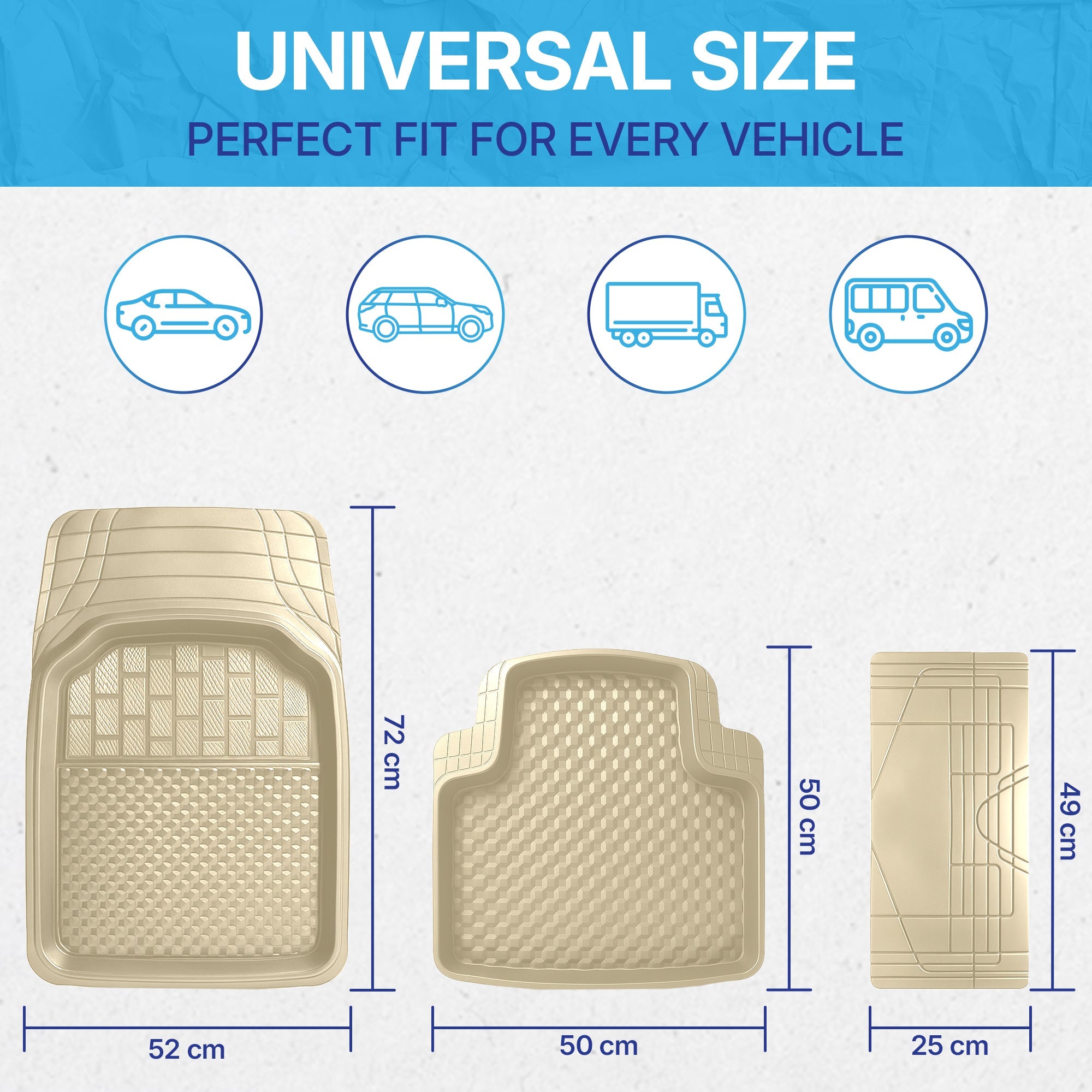 What is in the Box: Complete Set of 5 Pieces 3G PVC Car Mats - Universal Fit