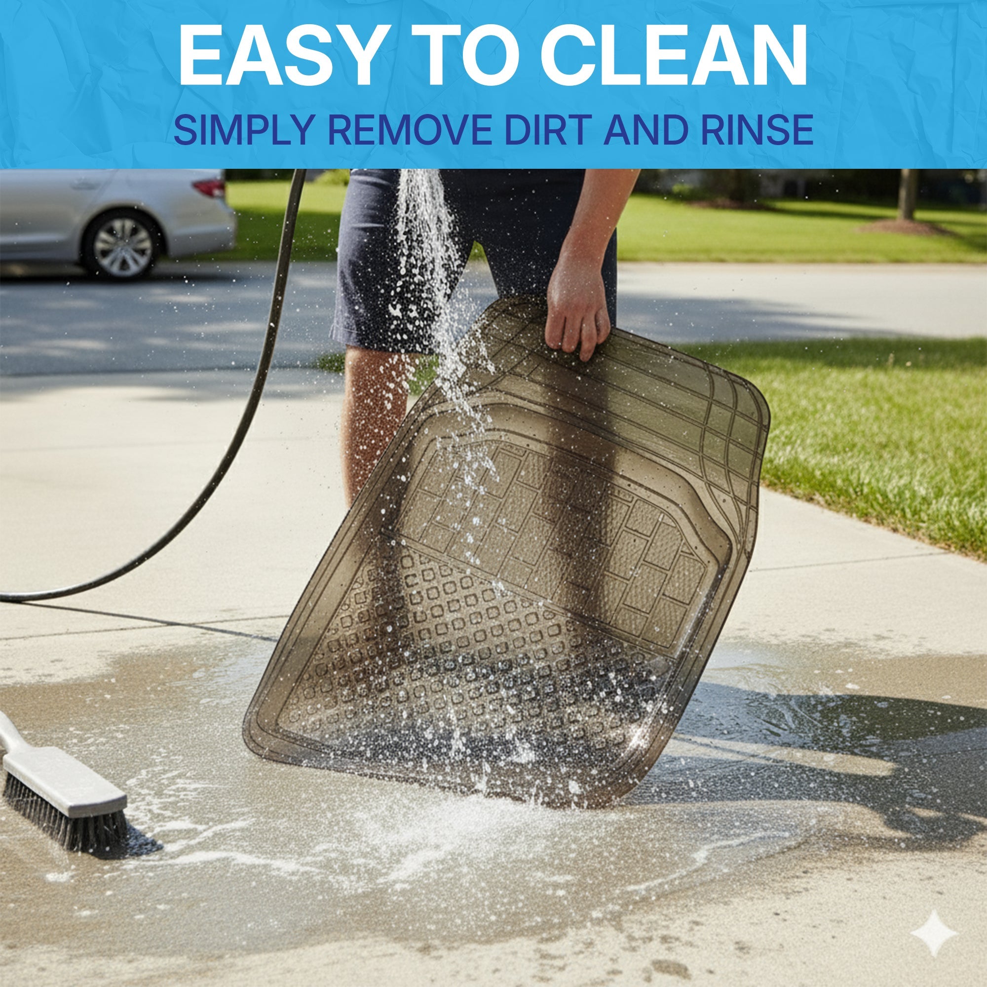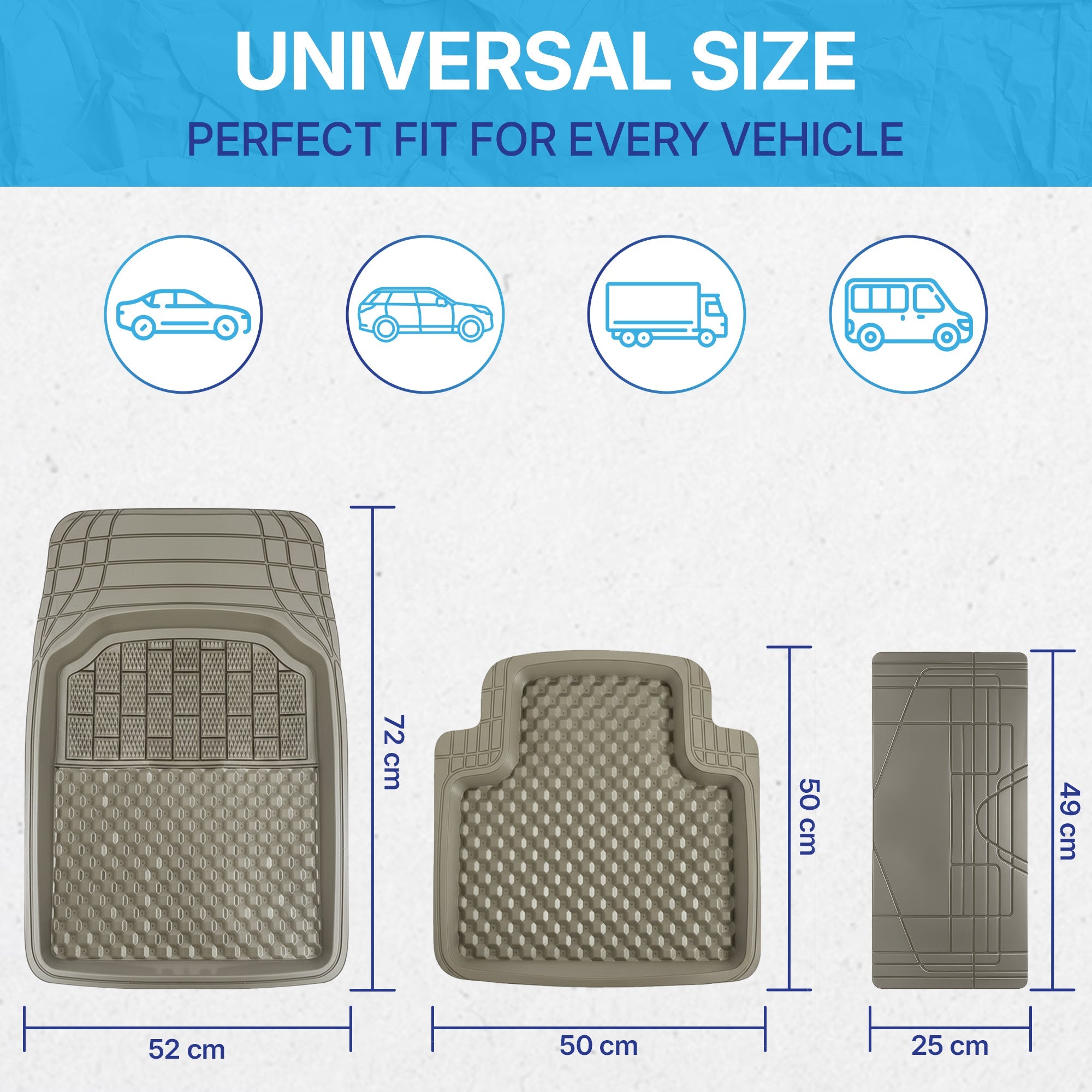 KINGSWAY Accessories Durable Universal Car Mats – Premium 5 Piece PVC Car Floor Mats, Tray Shape, Waterproof, Anti Slip Mat, All Weather Protection, Easy to Clean & Long Lasting Car Foot Mats, Smoke