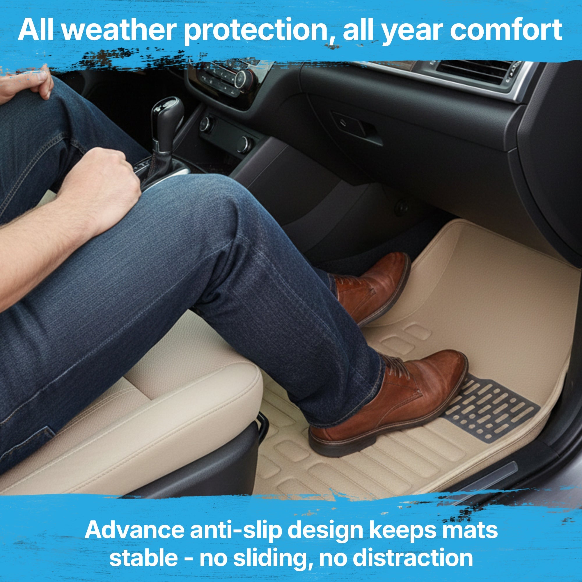 KINGSWAY Accessories Premium 3D Car Floor Mats Only Compatible with Mahindra Bolero Neo Year 2021 Onwards All Model, Set of 4, 100% Waterproof Tray Shape PVC 3D Car Foot Mats Anti-Slip Car Mat, Beige