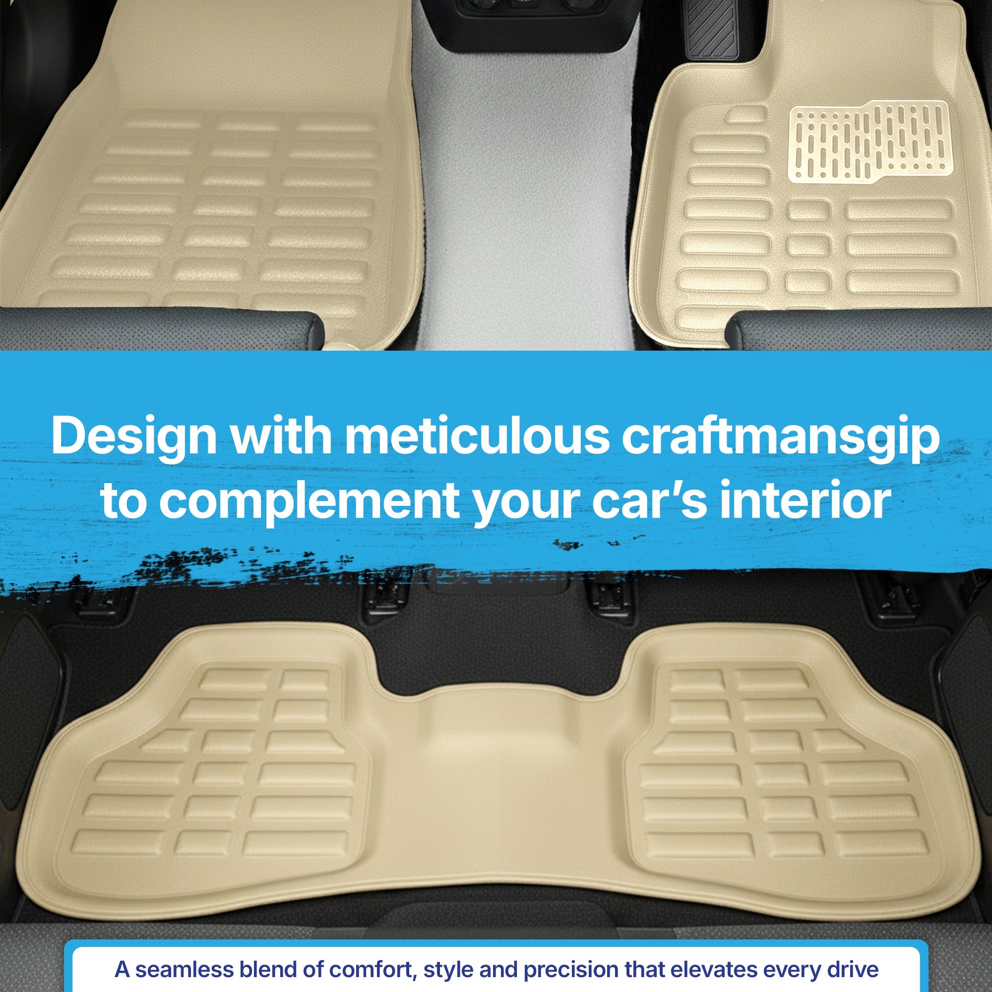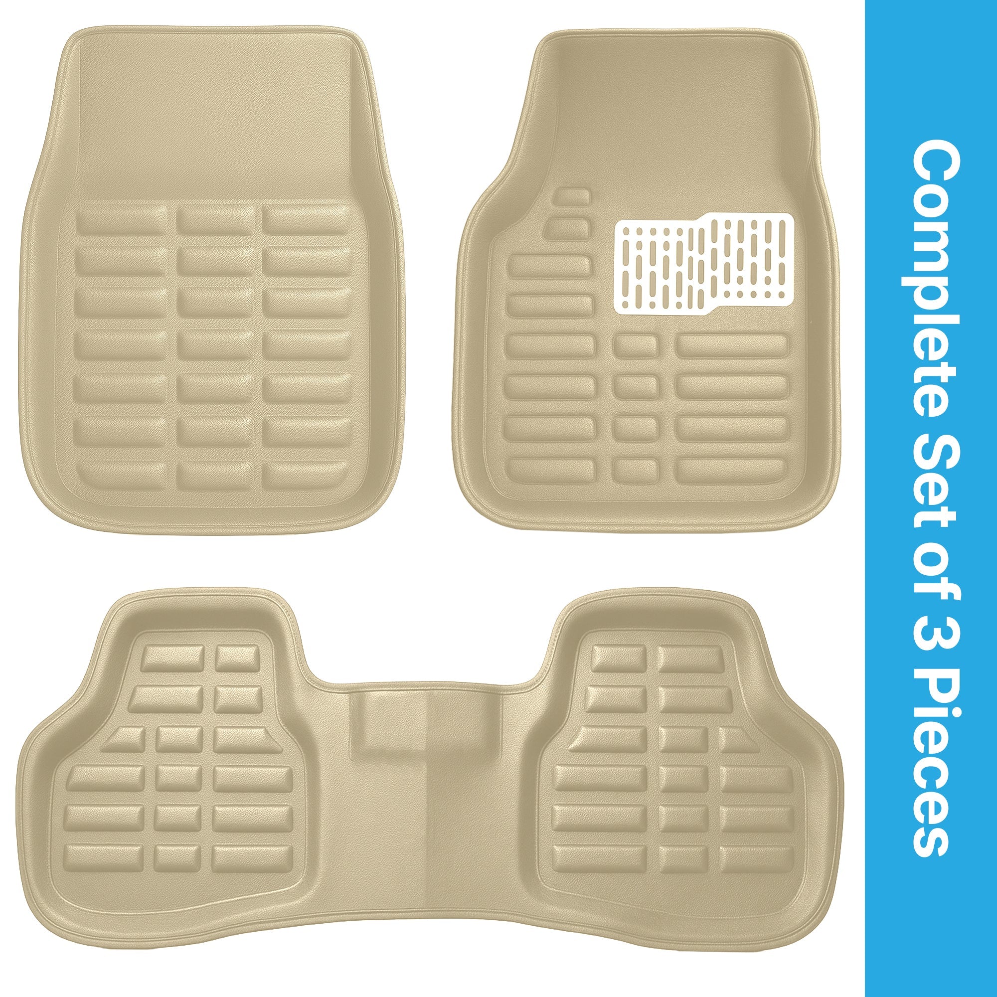 KINGSWAY Accessories Premium 3D Car Floor Mats Only Compatible with Maruti Suzuki Wagon R Stingray Year 2014 to 2018, Set of 3, 100% Waterproof Tray Shape PVC 3D Car Foot Mats Anti-Slip Car Mat, Beige