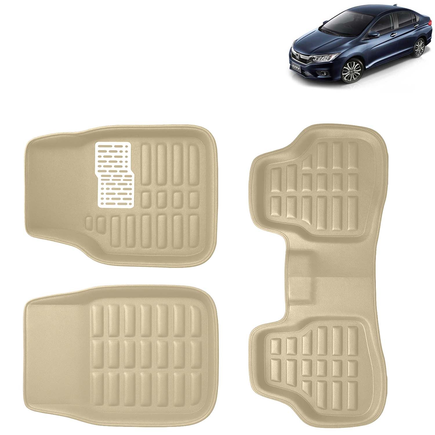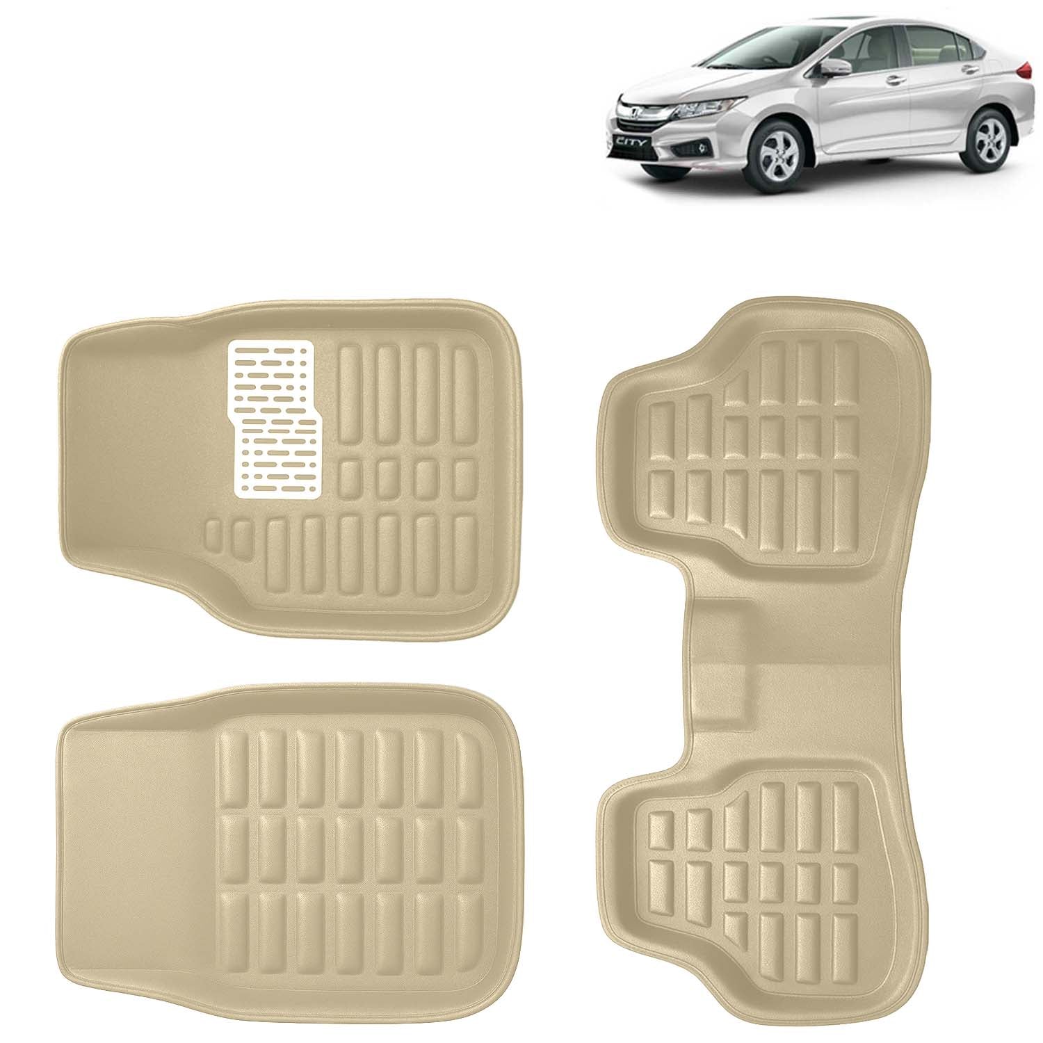 Kingsway Accessories Premium 4.5D Car Floor Mats Only Compatible with Honda City Year 2014 to 2016 All Model, Set of 3 Pcs, 100% Waterproof Tray Shape PVC 4.5D Car Foot Mats, Beige