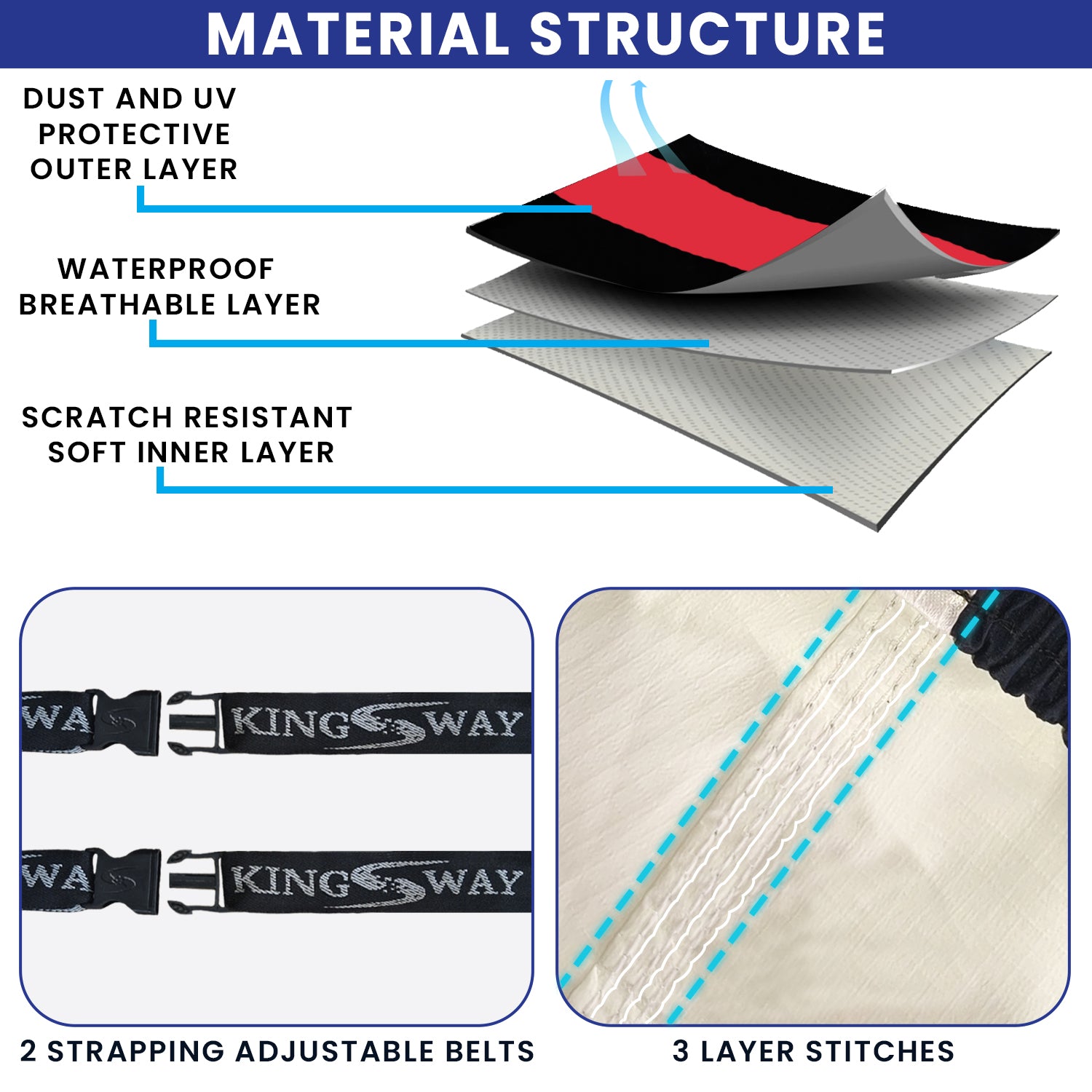 - 100% Waterproof Protection: Kingsway car body cover is designed to provide complete protection against rain, snow, and moisture. The innovative waterproof fabric ensures your vehicle remains dry and free from water damage, making it ideal for all weather conditions.