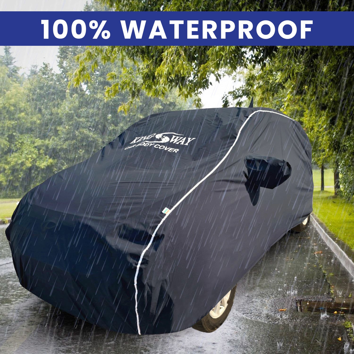 - 100% Waterproof Protection: Kingsway car body cover is designed to provide complete protection against rain, snow, and moisture. The innovative waterproof fabric ensures your vehicle remains dry and free from water damage, making it ideal for all weather conditions.