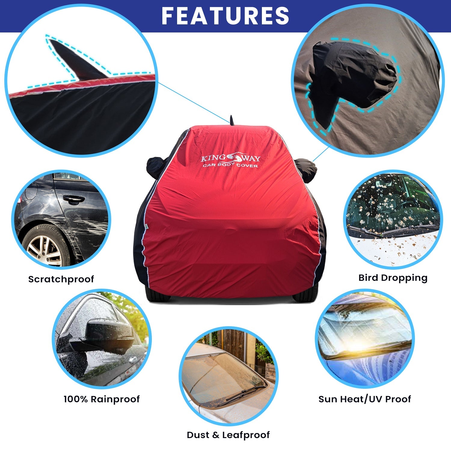 - 100% Waterproof Protection: Kingsway car body cover is designed to provide complete protection against rain, snow, and moisture. The innovative waterproof fabric ensures your vehicle remains dry and free from water damage, making it ideal for all weather conditions.