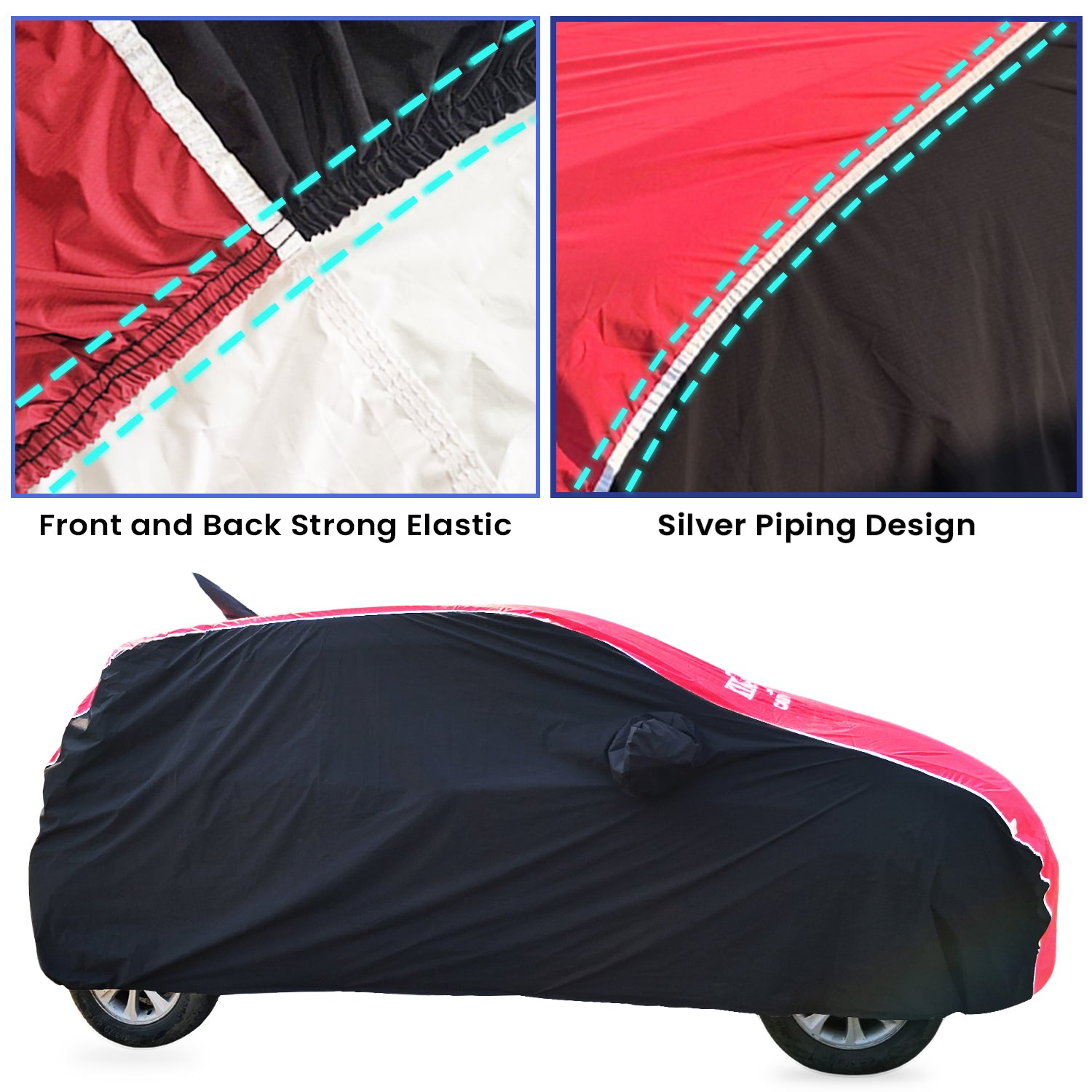 KINGSWAY Accessories Super Waterproof Car Cover Only Perfect Fit with Nissan Magnite Year 2020 Onwards, Mirror and Antenna Pockets, All Weather Protection Body Cover with Silver Piping, Black Red