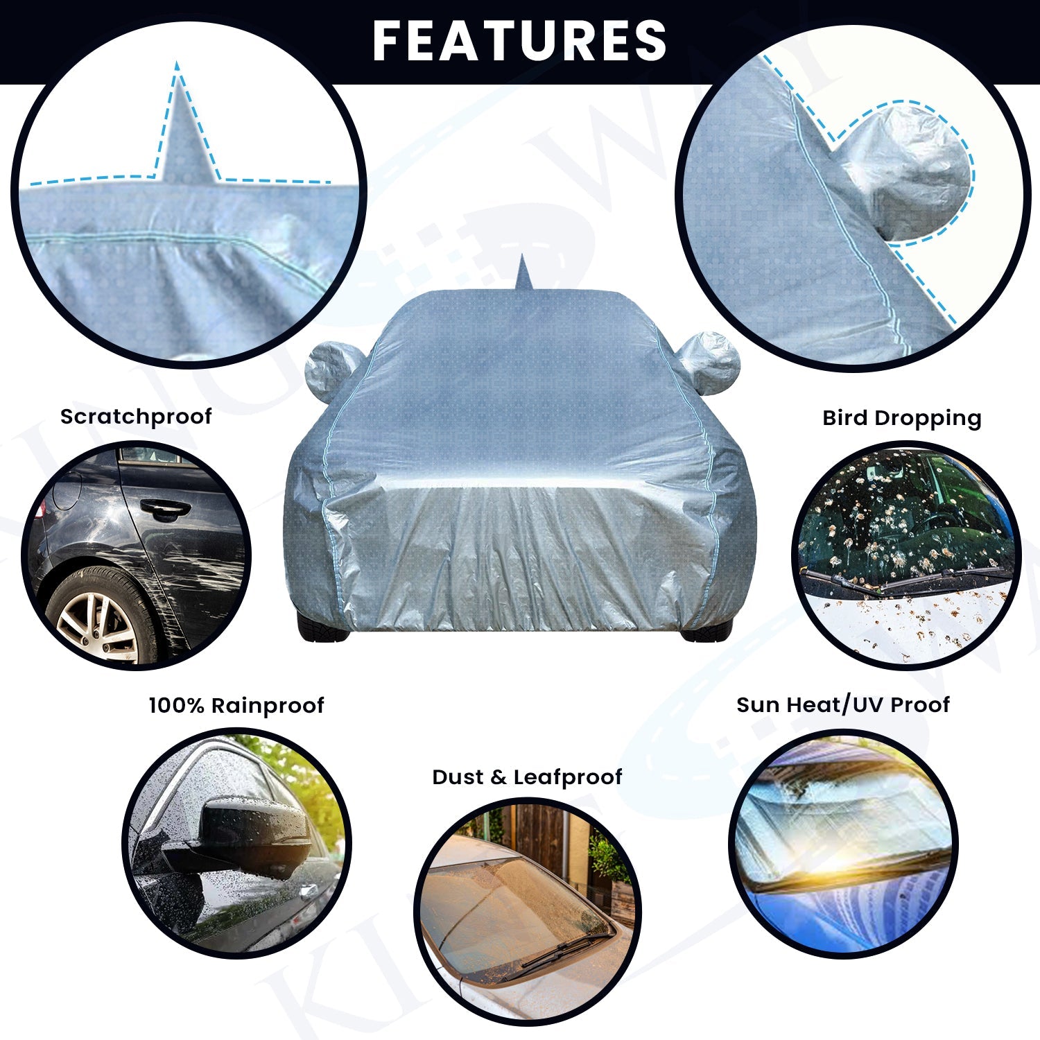 KINGSWAY SilverTech 100% Waterproof Car Cover Only Perfect Fit with Tata Tiago Year 2020 Onwards, Mirror and Antenna Pockets, All Weather Protection Body Cover with Inner Soft Cotton Lining