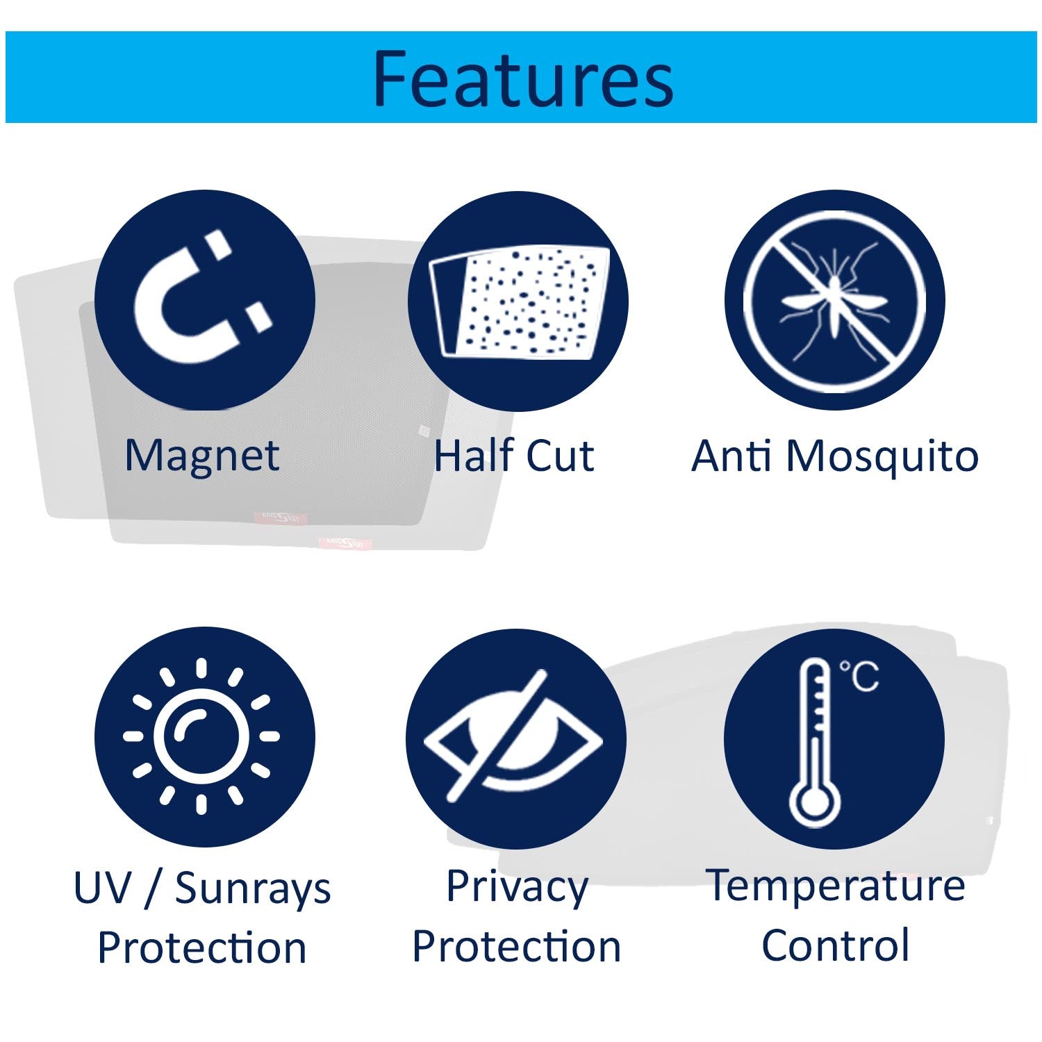 KINGSWAY Accessories Tata Punch EV Car Side Window Sun Shade Half Cut Magnetic, Only Compatible with Year 2024 Onwards All Model, Only Half Cut in Front Window, Car Curtains, Pack of 4
