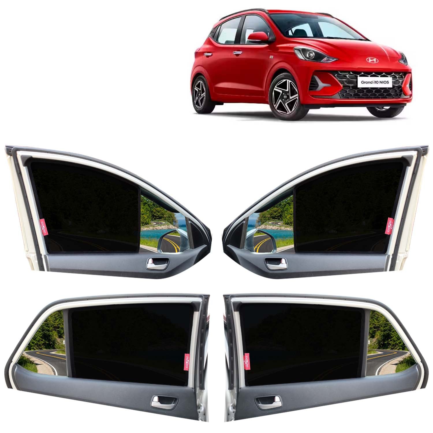 What is in the Box: 4 Piece Car Sun Shade Z-Black Non Magnetic Fix Type Curtains for Grand I10 Nios 2023 Onwards All Model