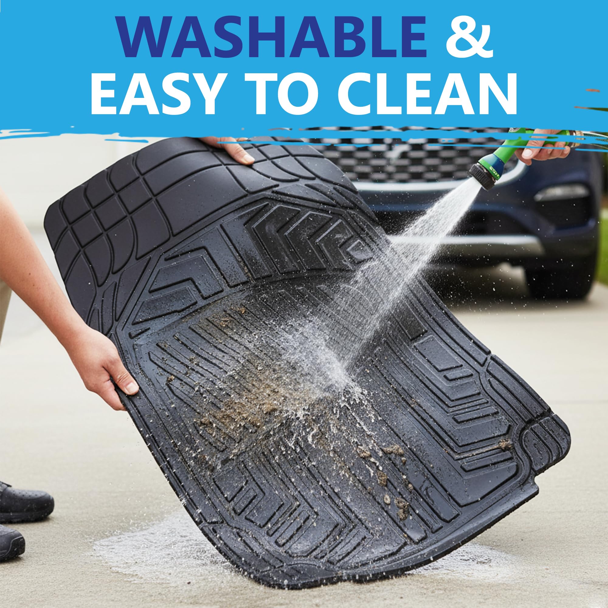 - 4-Piece Set: Includes 2 front and 2 rear mats for complete floor protection. Easy Maintenance: Simple to clean - just remove and rinse or wipe down.