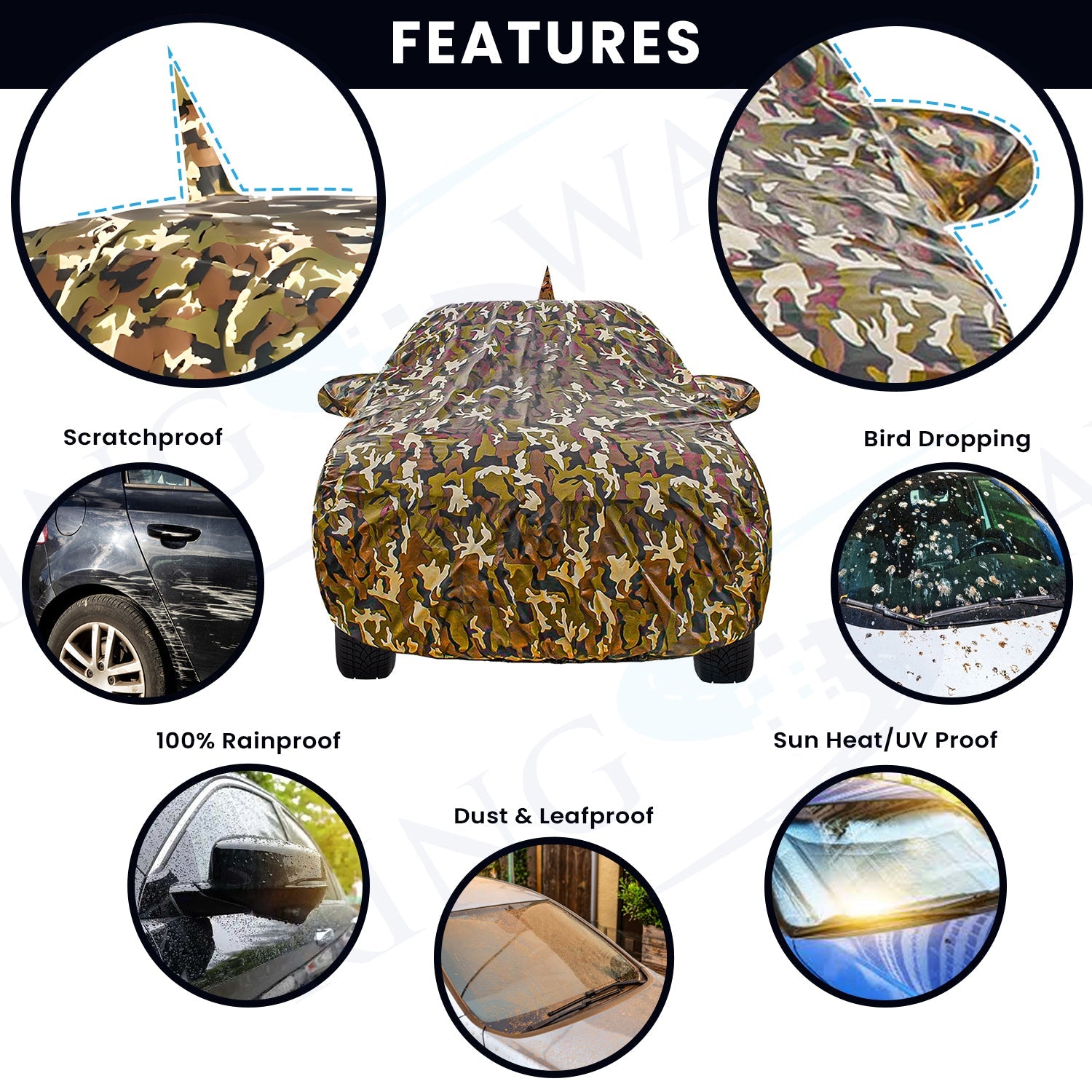 - PREMIUM QUALITY PROTECTION: Kingsway Jungle Print car body cover offers superior protection and compatible with Brezza 2022 Onwards against dust, dirt, scratches and water damage.