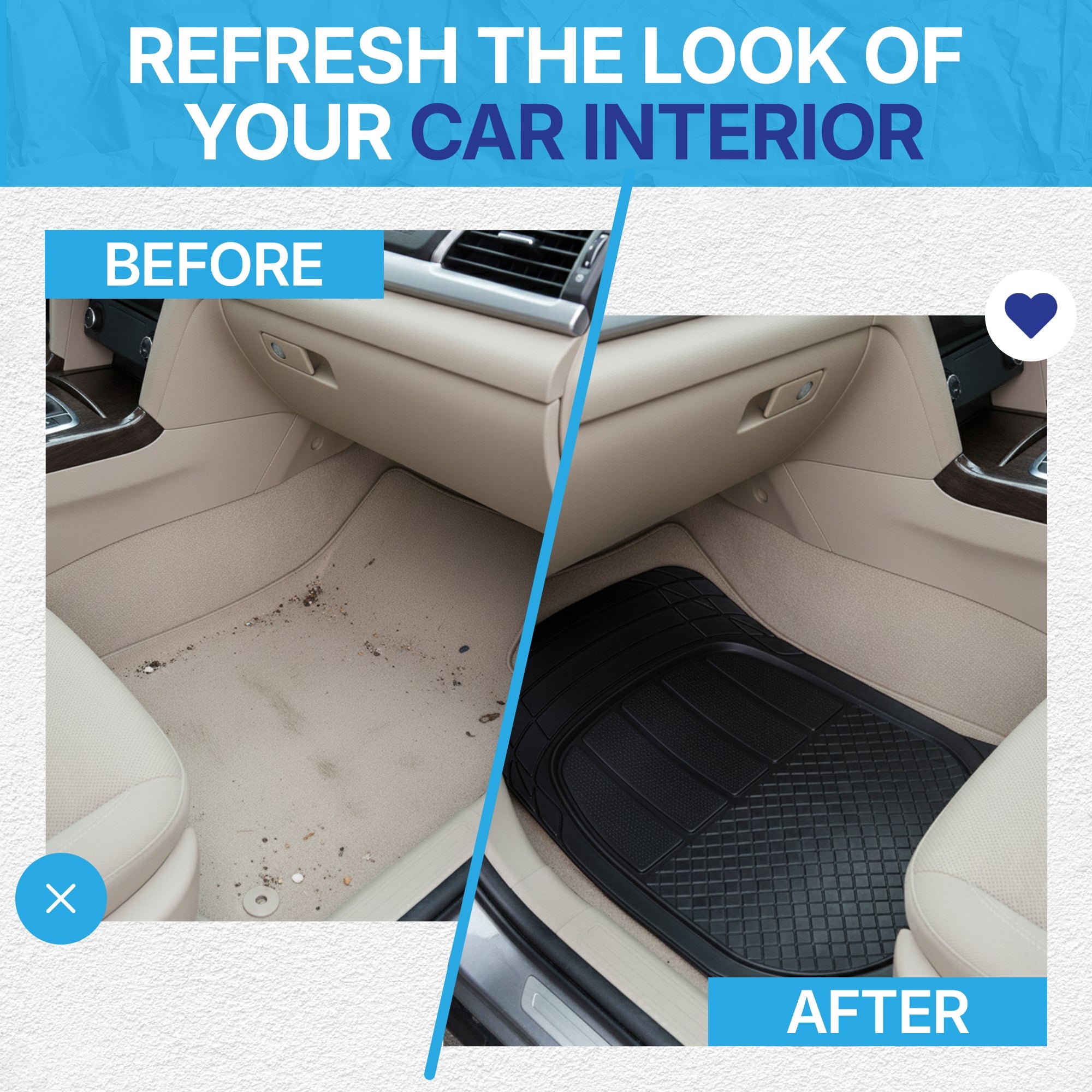 - Easy to Maintain for a Fresh and Clean Interior: The mats waterproof and stain-resistant surface allows quick and hygienic cleaning with a simple wipe down, vacuum, or rinsing. This effortless upkeep keeps your vehicle’s footwells looking pristine and free from accumulation of dirt, grime, and moisture, making them the perfect low-maintenance upgrade for your car.
