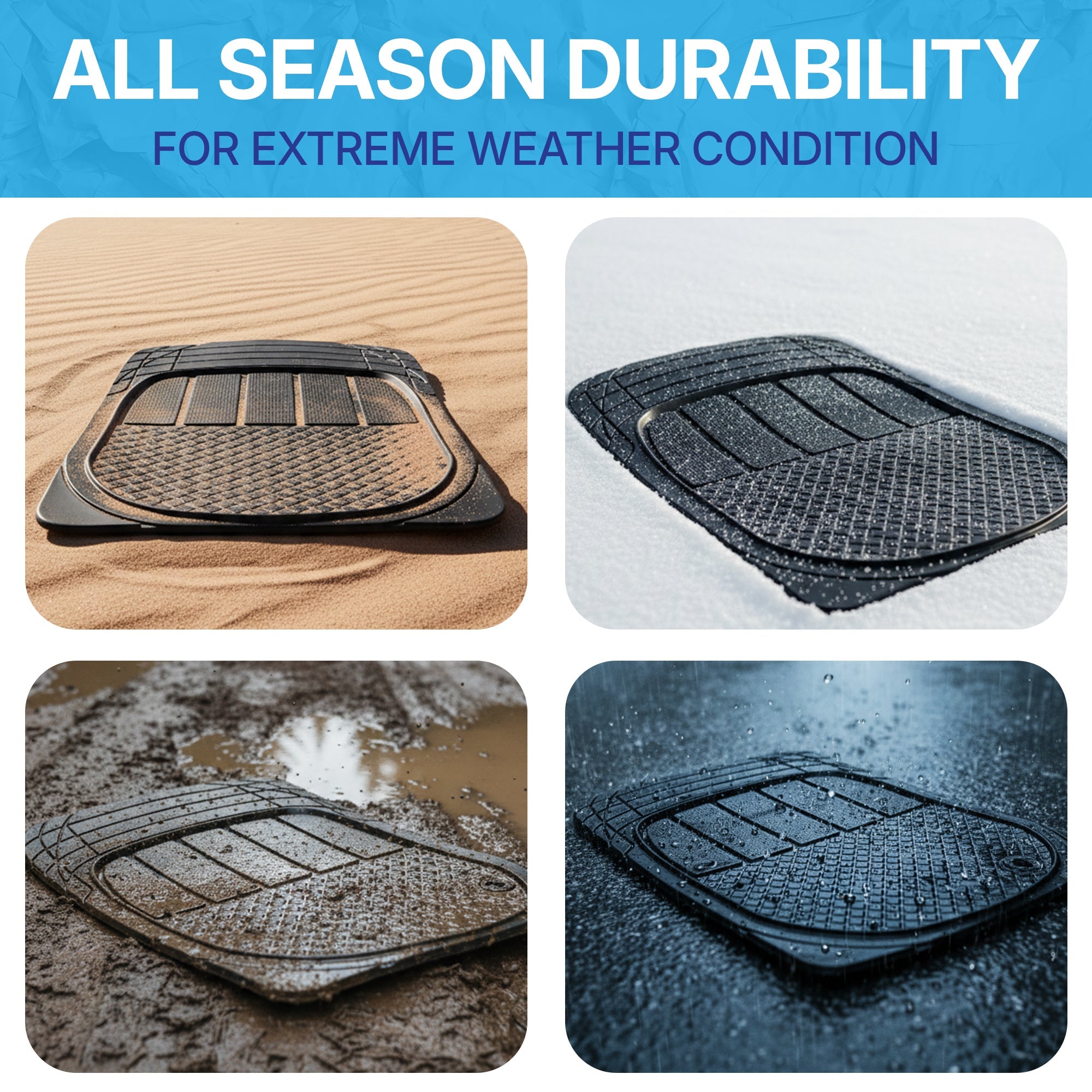 - Robust All-Weather Protection Against Elements: Constructed from high-performance rubber polymers, these mats provide a waterproof barrier that defends your car’s interior from dirt, mud, snow, rain, and spills. Their resilient nature allows them to stay flexible and resistant to cracking or deforming even under extreme temperature fluctuations, making them ideal for diverse climates.