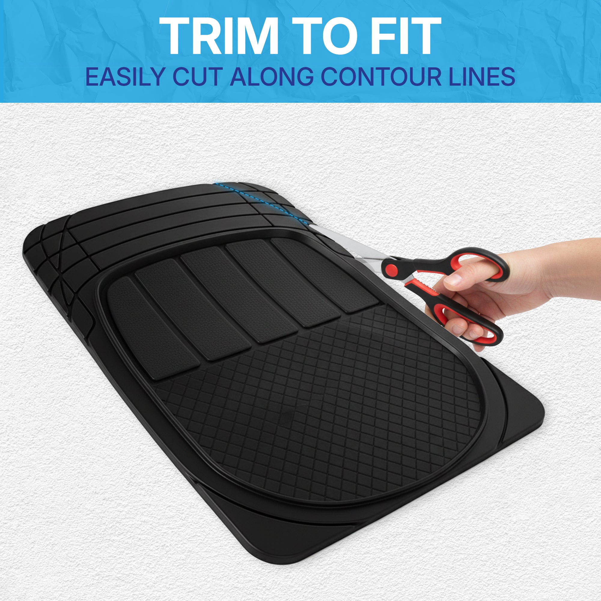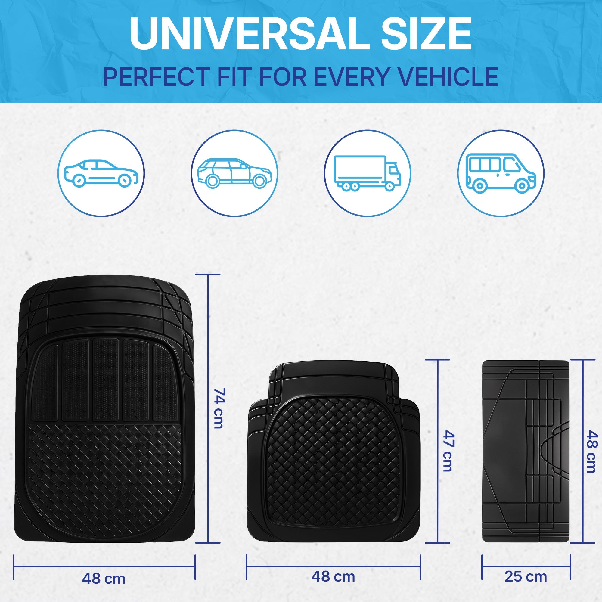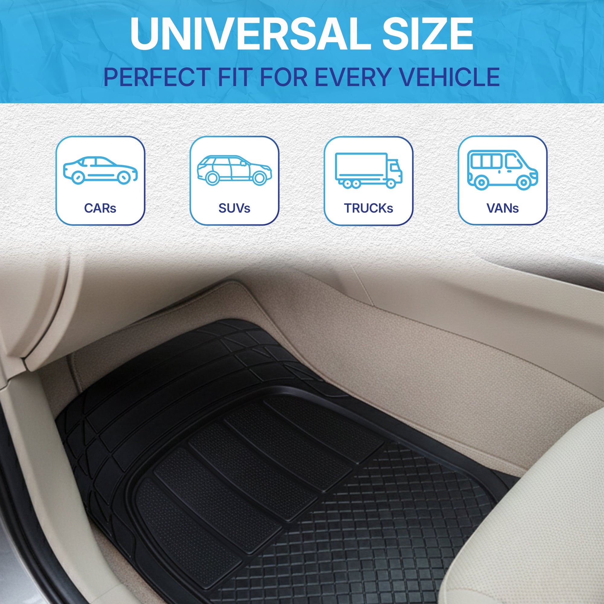 KINGSWAY Accessories Universal Anti-Skid Car Floor Mats Set of 5, Customizable Fit Rubber Mats for Car, All-Weather Protection, Anti-Tear Technology, Waterproof & Durable Foot Mats for All Cars, Black