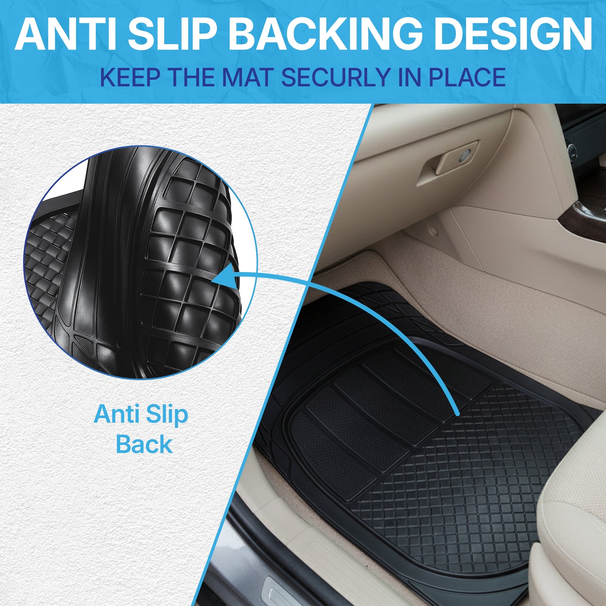 - Engineered Anti-Slip Grip for Safety and Stability: Designed with a special textured backing, these mats firmly anchor to your vehicle’s floor, eliminating unwanted movement that can interfere with pedal control. This ensures safer driving by maintaining consistent traction underfoot, especially in wet, slippery, or uneven driving conditions.