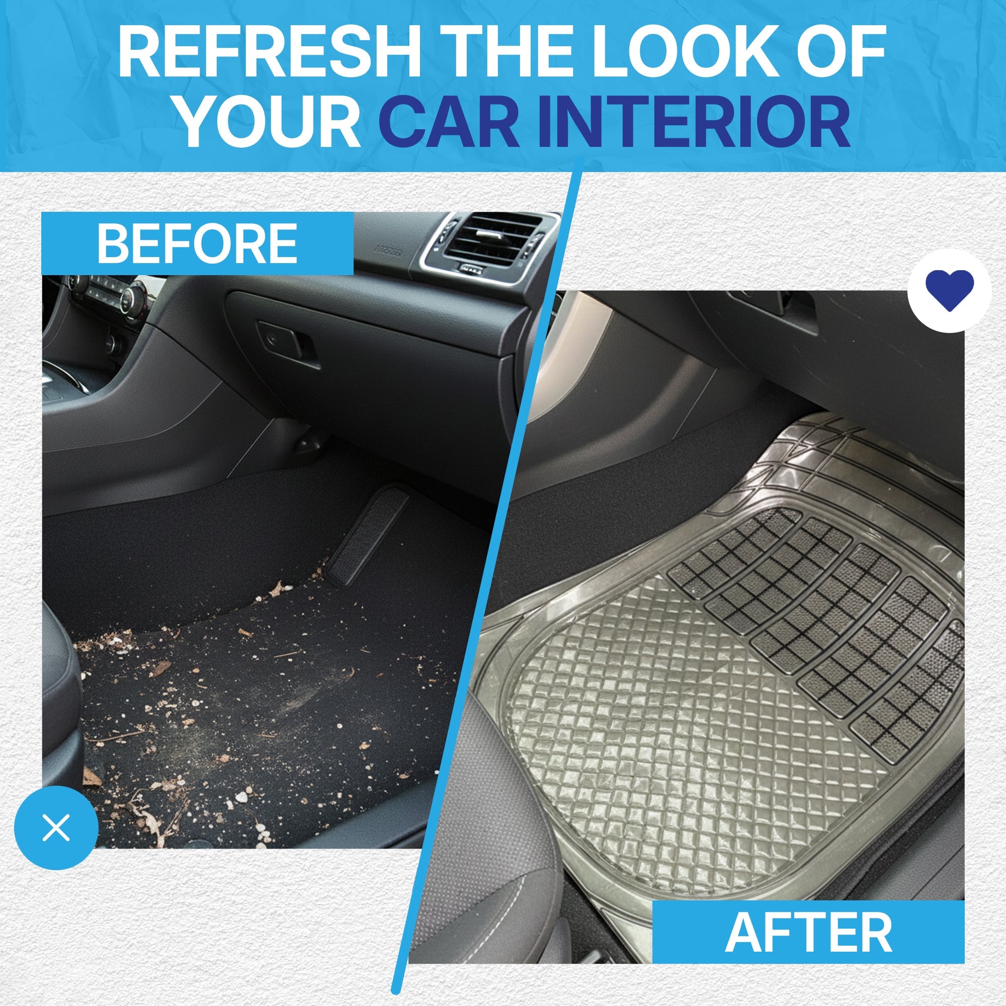 - Easy to Maintain for a Fresh and Clean Interior: The mats waterproof and stain-resistant surface allows quick and hygienic cleaning with a simple wipe down, vacuum, or rinsing. This effortless upkeep keeps your vehicle’s footwells looking pristine and free from accumulation of dirt, grime, and moisture, making them the perfect low-maintenance upgrade for your car.