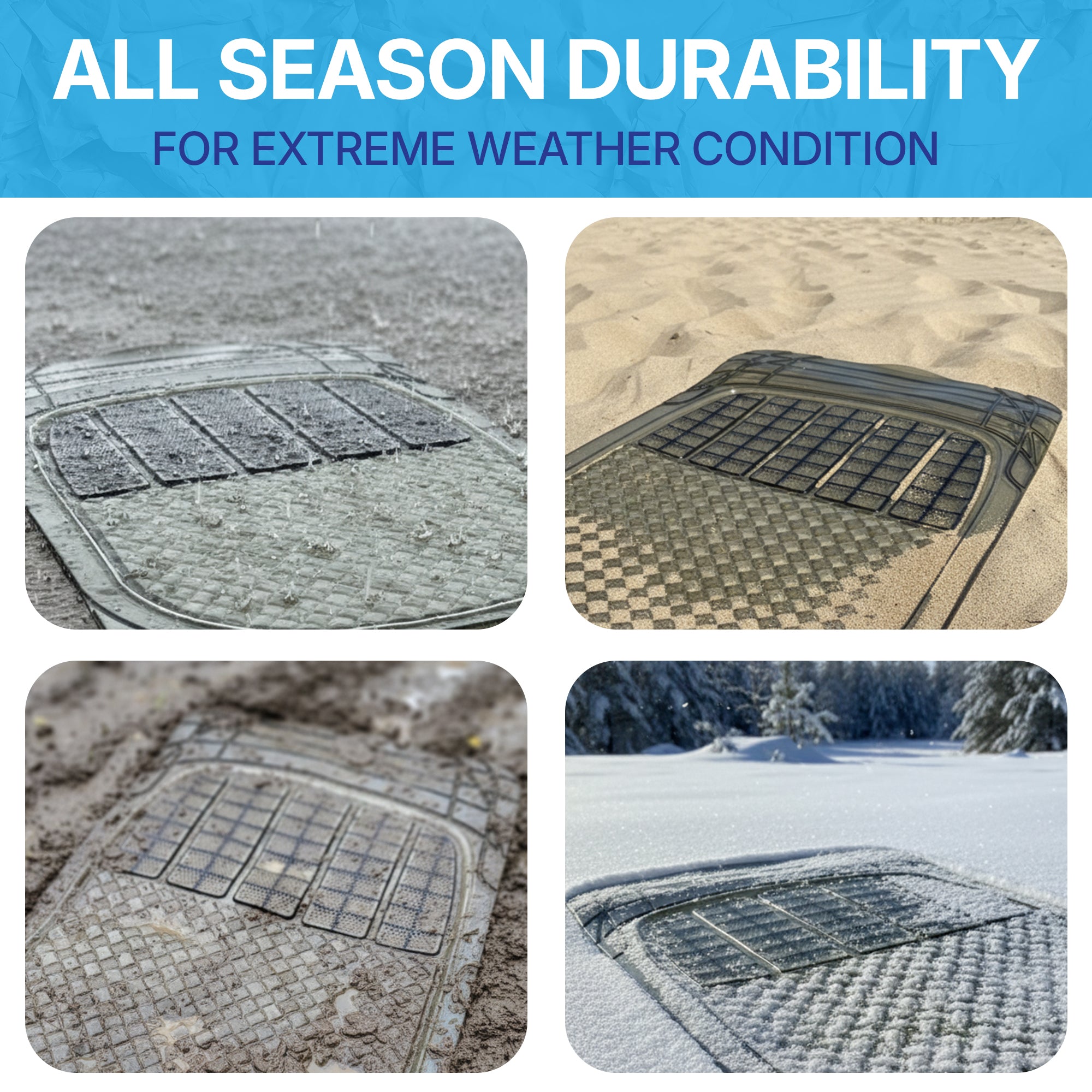 - Robust All-Weather Protection Against Elements: Constructed from high-performance rubber polymers, these mats provide a waterproof barrier that defends your car’s interior from dirt, mud, snow, rain, and spills. Their resilient nature allows them to stay flexible and resistant to cracking or deforming even under extreme temperature fluctuations, making them ideal for diverse climates.