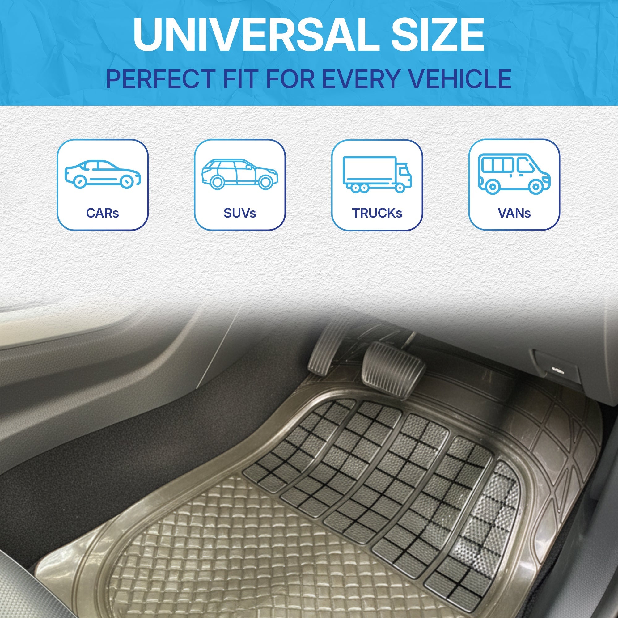 - Customizable Fit for Perfect Coverage: Unlike fixed-size mats, the KINGSWAY universal design allows you to easily trim the edges with household scissors to precisely fit the contours of your car’s floor. This customizability ensures seamless protection without gaps, enhancing both the aesthetic and protective functionality of your vehicle’s interior.