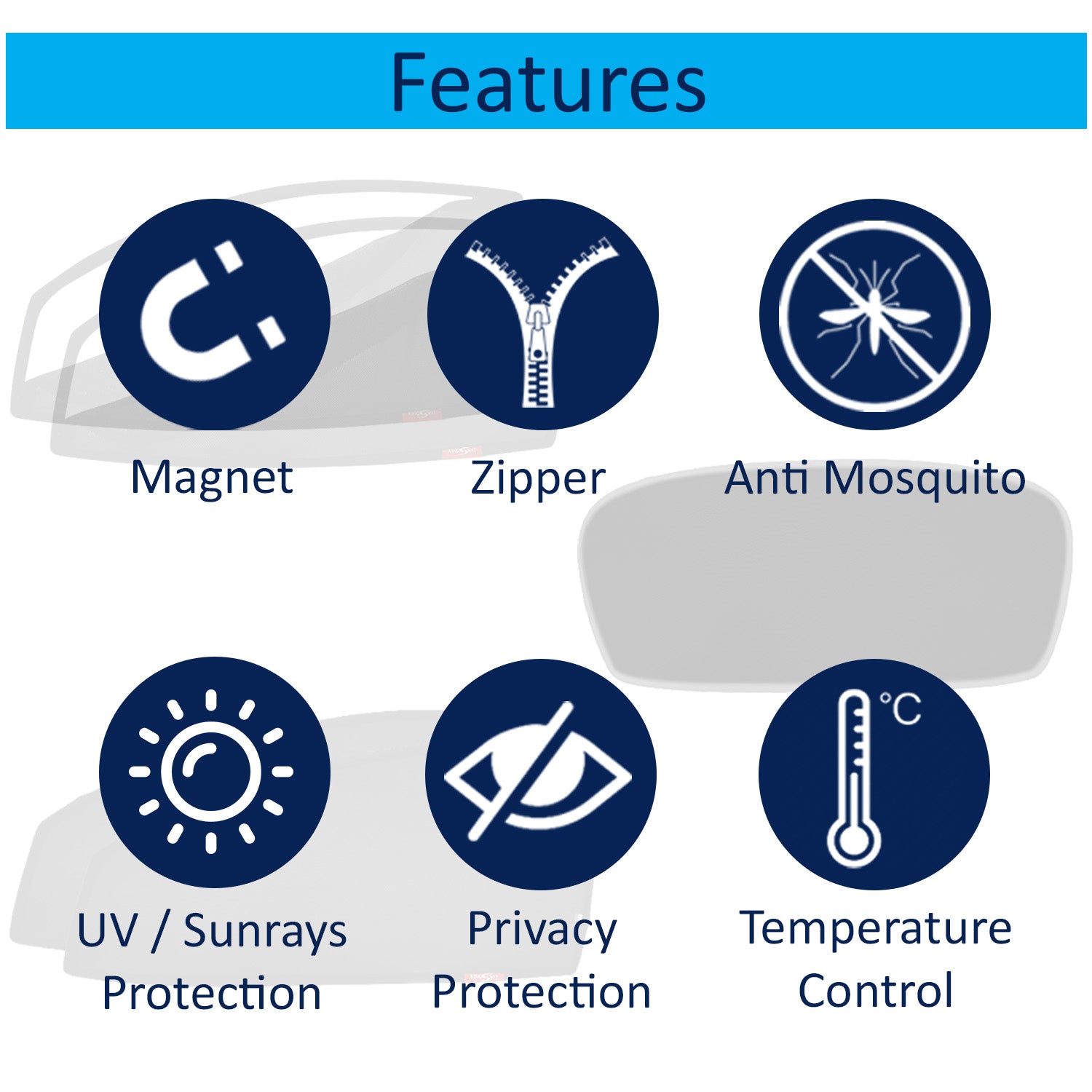 - Minimize UV Radiation: Kingsway Sunshade is Made of Heat-Resistant Cotton Mesh Fabric. The Shade Can Safely Protect Your Vehicle's Interior By Keeping The Inside Temperature Intact and Isolating Any Severe UV Penetration.
