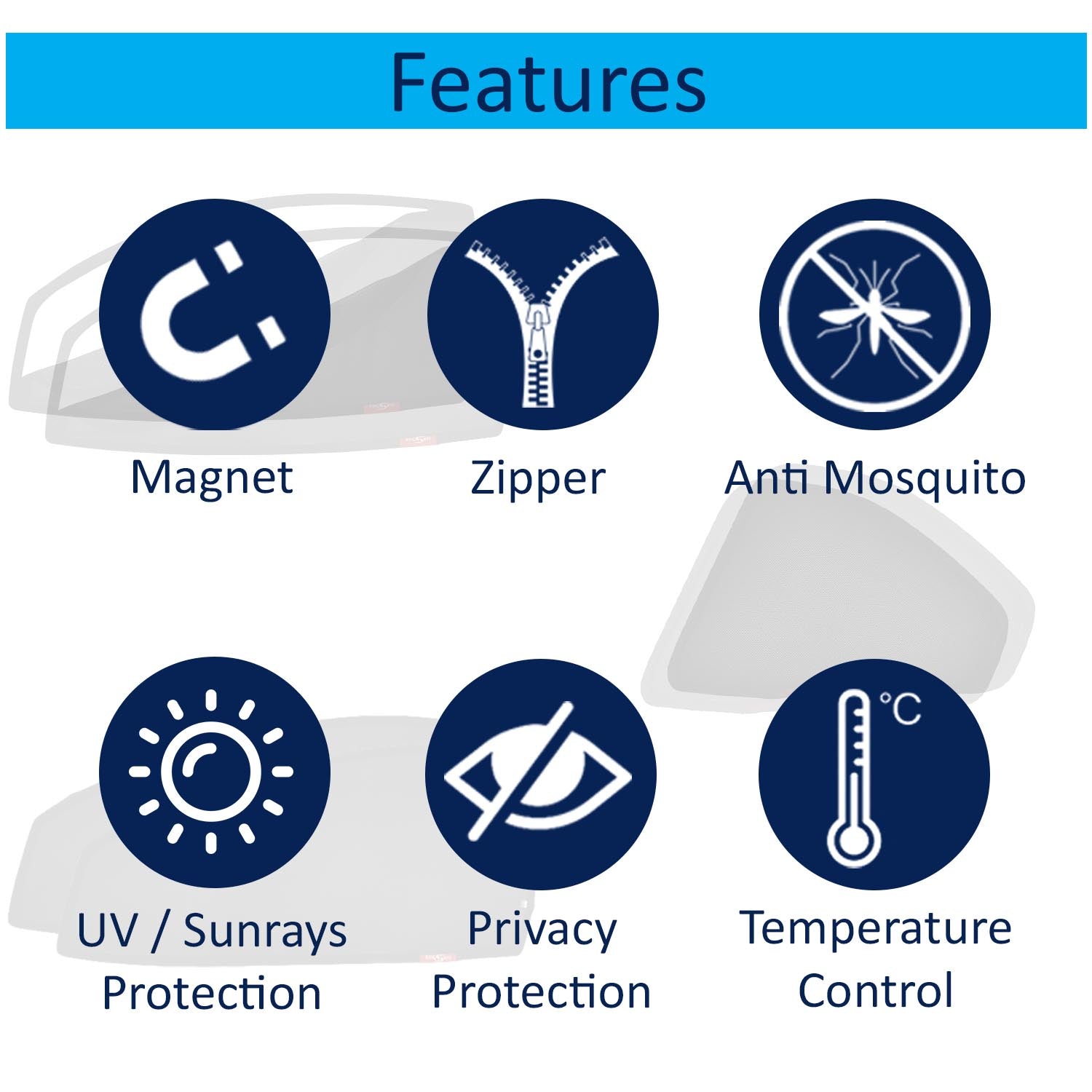 What is in the Box: 6 Piece Car Side Window Sun Shade Zipper Magnetic for Invicto 2023 Onwards All Model